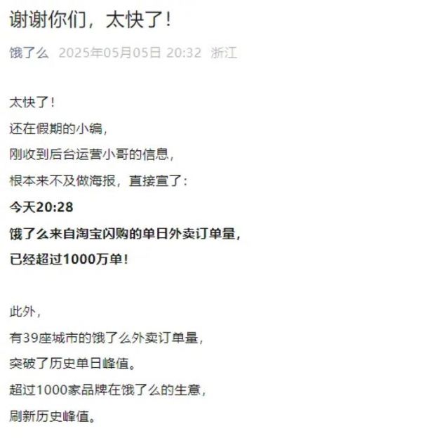所以现在的情况就是之前京东和美团掐架一个月,现在却被阿里巴巴截胡了,特别是淘宝闪购短短几天就把订单量做到了1000万,比京东快多了。