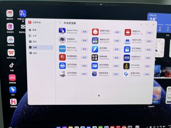 在软件适配之外,华为也没有落下硬件生态的适配。不同于智能手机这类终端,PC对于键鼠、打印机、投影仪等这类硬件设备的链接是有强需求的,华为也在应用市场中单独列出了一个专区,以为用户提供不同品牌的驱动程序。