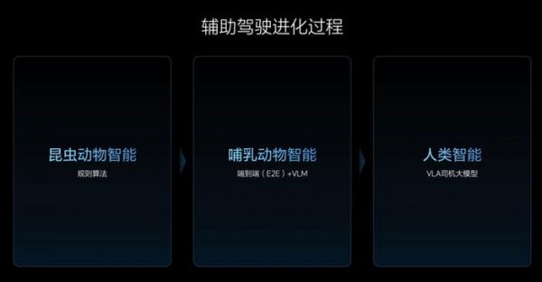 李想将智能辅助驾驶拆解成了三个发展阶段,用自然界中不同的物种进行了形象的比喻: