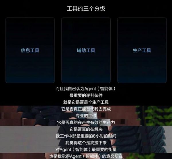 第一阶段,昆虫动物智能。通过机器学习感知配合规则算法的分段式辅助驾驶解决方案,需要有既定的规则,同时依赖高精地图,类似蚂蚁的行动和完成任务的方式。第二阶段,哺乳动物智能。端到端阶段通过大模型学习人类驾驶行为(类似马戏团的动物),但其对物理世界的理解并不充分,此阶段通过三维图像判断自身速度和轨迹以及在空间中所处的位置,足以应对大部分泛化场景,但很难解决从未遇到过或特别复杂的问题,此时需要配合视觉语言VLM模型,但现有视觉语言模型在应对复杂交通环境时只能起到辅助作用。第三阶段,人类智能。VLA阶段可以实现类似人类观察世界的方式,利用3D视觉和2D的组合构建更真实的物理世界,VLA拥有自己的脑系统,进一步理解物理世界,还具备语言和思维链系统,也就是VLA的司机大模型。这同时也对应着李想本人对于AI工具的分级制度——信息工具、辅助工具和生产工具,"我觉得人工智能变成生产工具,然后才是真正人工智能爆发的时刻。"