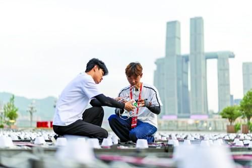无人机飞行工程师正指导团队成员检查无人机。新华社 图