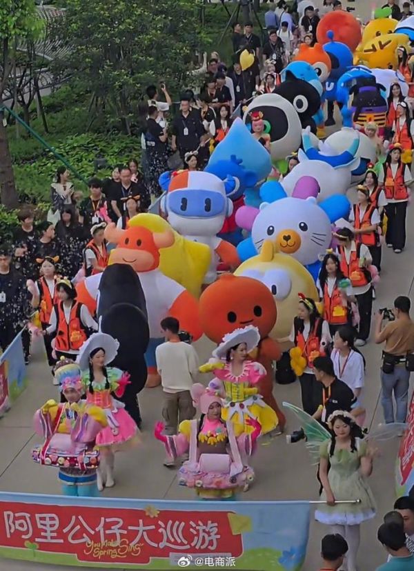 马云低调现身阿里日,在人群边缘看公仔大巡游,有员工透露走小路时遇见,还打了招呼。