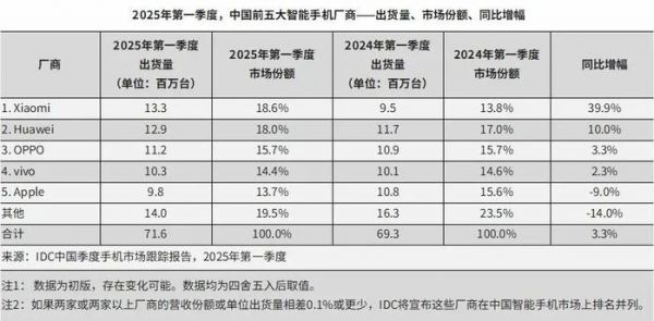 IDC数据显示,2024年Q1至2025年Q1,iPhone中国市场出货量分别同比下跌6.6%、3.1%、0.3%、9.6%和9%。