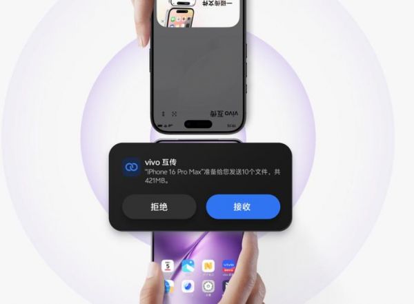 比如,vivo办公套件可以让vivo手机和Mac电脑双向互传数据;通过vivo互传软件,vivo手机不仅能与iPhone“碰一碰”互传数据,还可以与iPhone实现电话、短信、通知相互流转。所谓“流转”,就是说,如果你同时有vivo和iPhone,可以在vivo上看到iPhone的来电通知和短信。