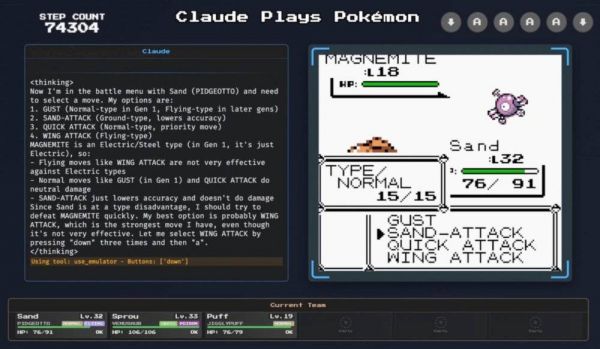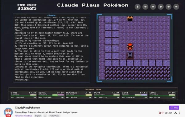 早在今年2月,美国另一家AI科技公司Anthropic就对外公布了名为“Claude Plays Pokémon”的技术实验,实验内容就和它的名称一样,试图让该公司旗下的最新版本AI Claude 3.7 Sonnet体验初代宝可梦游戏,并以“通关游戏”作为实验的最终目标。