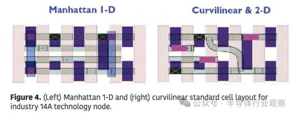 曲线(Curvilinear)OPC和掩模策略仍然基于曼哈顿电路设计布局。下一步,imec提议在设计阶段就引入曲线几何形状和路径( curvilinear geometries and paths),这是一个创新概念,其优势远超曲线OPC和掩模策略。与当前的路线图演进不同,曲线设计有望在降低晶圆制造成本的同时实现技术节点过渡,同时提升电气性能。因此,正如imec在2025年SPIE先进光刻与图案化会议上的受邀论文中所展示的那样,它有望彻底改变半导体行业。我们通过三个用例展示了其优势。