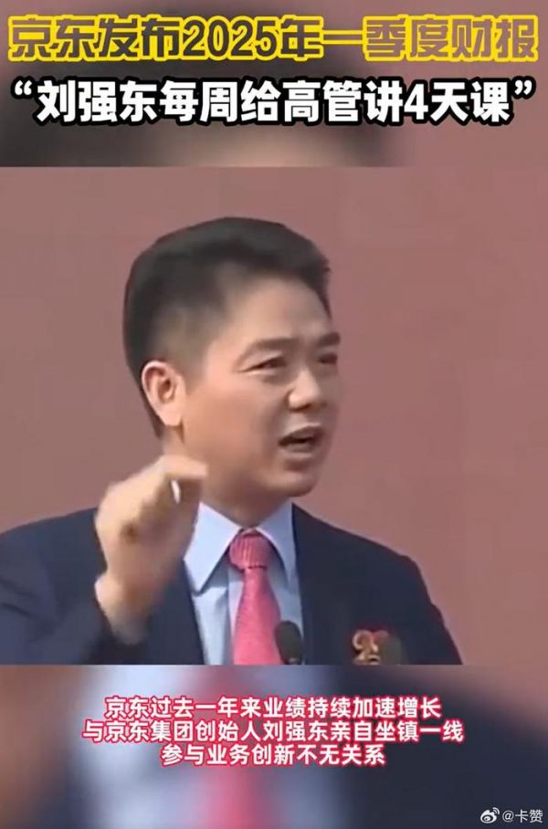 #京东发布2025年一季度财报##刘强东去年每周至少讲4天课# 有报道称,京东2025年Q1财报表现亮眼,收入、活跃用户数等关键指标均超预期。这背后离不开刘强东的付出,去年他高频授课,给管理层培训800人次,从各方面给予细致指导。他的 “硬核” 投入,为京东注入强大动力,也让我们看到领导者的责任与担当[666]