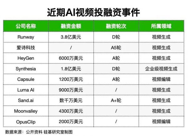 据“硅基研究室”不完全统计,2025年开年,就有十余家AI视频领域初创企业斩获融资,既包括了像Runway这样的明星独角兽,也不乏Sand.ai等新玩家。