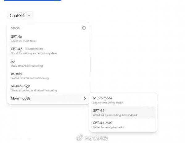 Pro、Plus 和 Team 用户可以通过“More models”下拉菜单立即选择该模型,而 Enterprise 和 Edu 用户预计在未来几周内获得访问权限。同时,GPT-4.1 mini 取代了 GPT-4o-mini,并向所有 ChatGPT 用户开放。