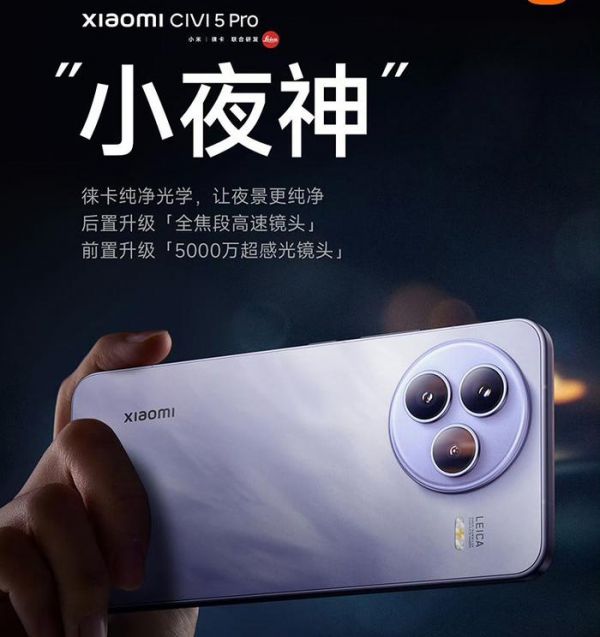 根据预热的海报来看,小米Civi 5 Pro背面的摄像头DECO采用圆形设计,想法应该是致敬徕卡的设计语言吧,但是这个不居中的圆形搭配方形的手机边框,看起来总感觉有那么一点奇怪。Civi 5 Pro的后摄首次搭载徕卡浮动长焦,升级成为全焦段高速镜头。前摄升级为5000万超感光镜头,前后双摄都对暗光影像进行了升级,官方称其为“小夜神”。而根据爆料称,正面不是直屏,而是等深四曲屏。