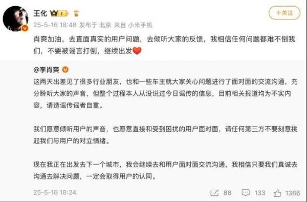 小米公关负责人王化转发表示:“肖爽加油,去直面真实的用户问题,去倾听大家的反馈,我相信任何问题都难不倒我们,不要被谣言打倒,继续出发。”