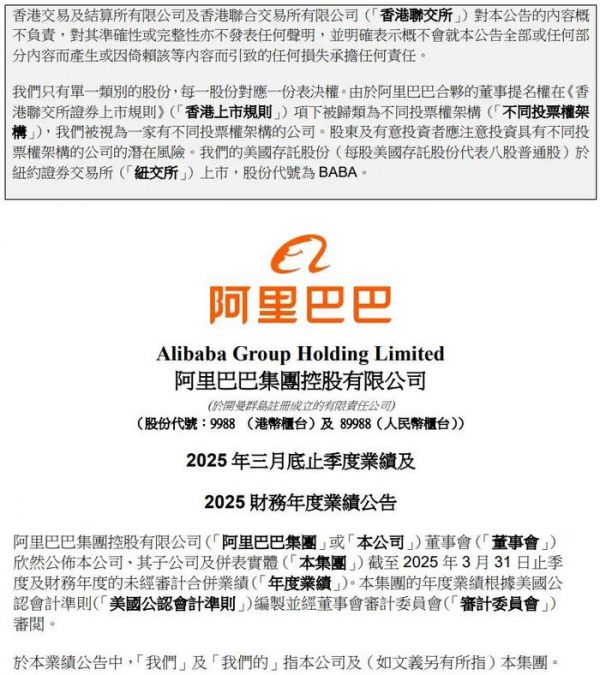 来源/上市公司公告、中国基金报2025年5月15日晚间,港股上市公司阿里巴巴(09988.HK)发布2025财年第四季度及全年财报。
