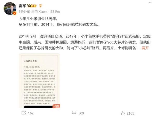 雷军发长文官宣:小米3nm芯片来了