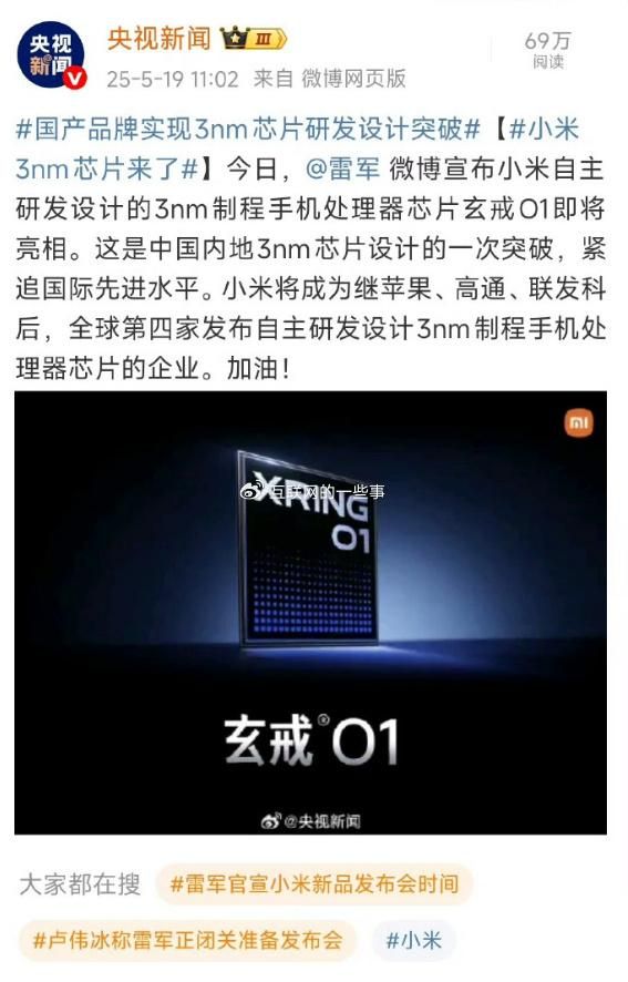 小米自研手机SoC玄戒O1官宣,或基于3nm制程