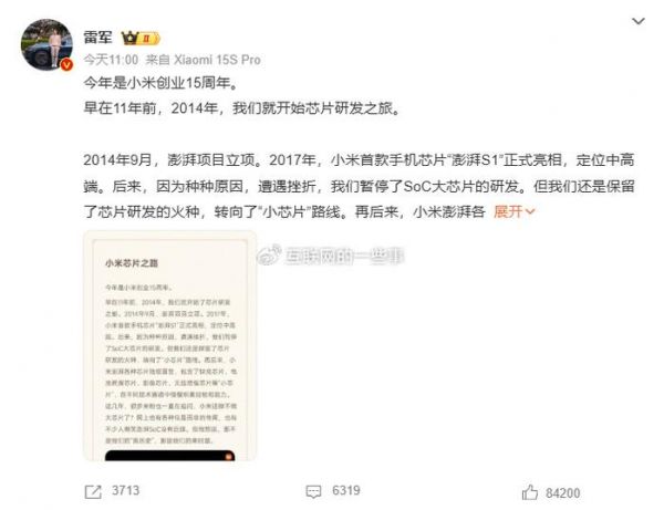 在小米创业15周年之际,雷军亲自发布长文,全面回顾并展望了小米的芯片征程。
