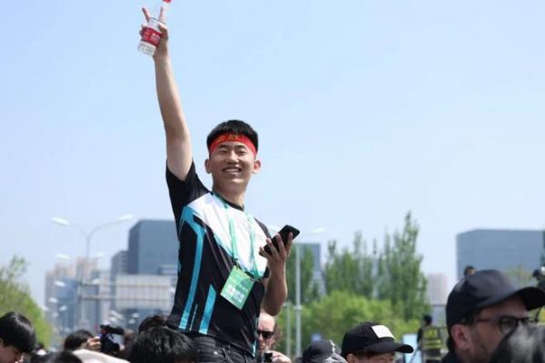 在马拉松终点站围观区,姜哲源头戴印着“必胜”的红色发带,激动地挥舞着双臂给N2加油助威,并激情劝说旁边的观众也买一台玩玩,直播间的观众评价他是“最有情绪价值的老板”。事后,他还把那张戴着红色发带的照片设置成了微信头像。