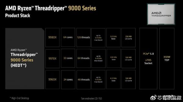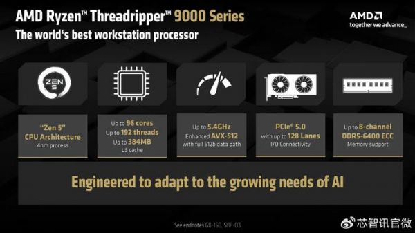 AMD Ryzen Threadripper 9000系列发布:Zen 5架构,最高96个核心