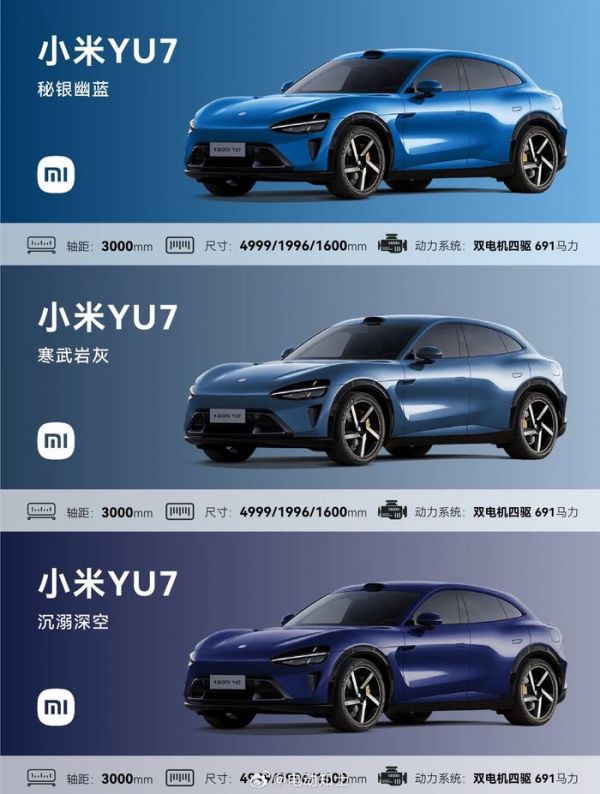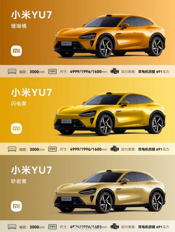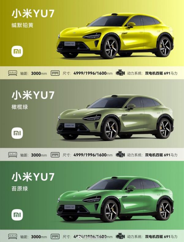 小米YU7如果真按这个色卡来出,车主们应该会选择恐惧症