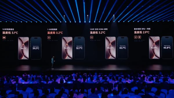 看完跑分,小米也对比了一些具体的使用场景,在实际的视频通话、MOBA游戏以及充电+导航的场景中,小米15S Pro的机身温度都要更低。