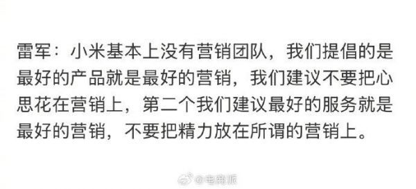 雷军:小米基本上没有营销团队,建议不要吧心思花在营销上。