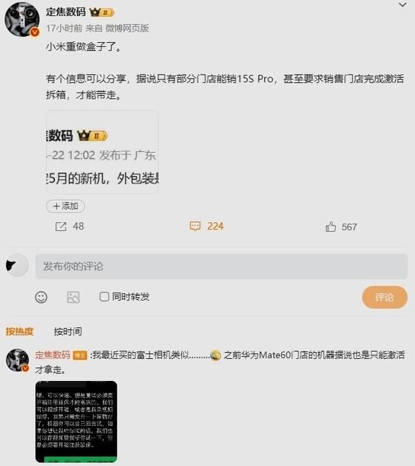传小米15S Pro需当场激活才能带走 仅部分门店销售