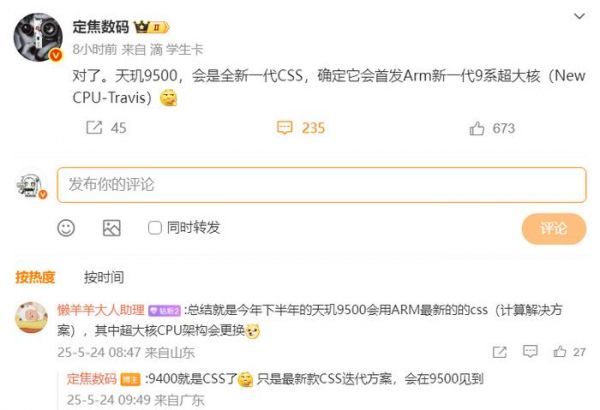 天玑9500再次被确认:CPU架构更换,且配备全新CSS技术!