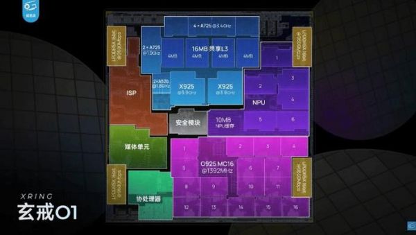玄戒O1是在台积电N3E节点上制造的,与联发科的天玑9400相同。它还使用了一些相同的部分——例如,CPU使用了Cortex-X925,GPU使用了Immortalis-G925。然而,设计非常不同。