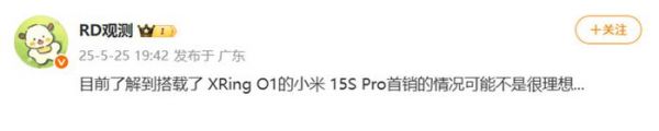 根据RD观测的消息,目前搭载玄戒O1的小米15S Pro首销情况可能并不是很理想。