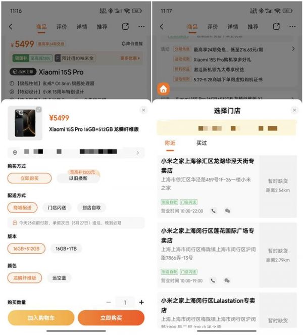 最后,就是关于小米15S Pro线上线下分销的策略可能有失误。目前小米15S Pro的情况是线上可以随便下单,但是很多线下的小米之家却没有库存,甚至很多店面连展示机都没有。