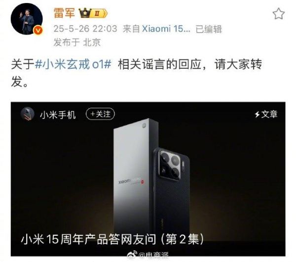 雷军恳请大家转发辟谣小米辟谣向Arm定制芯片