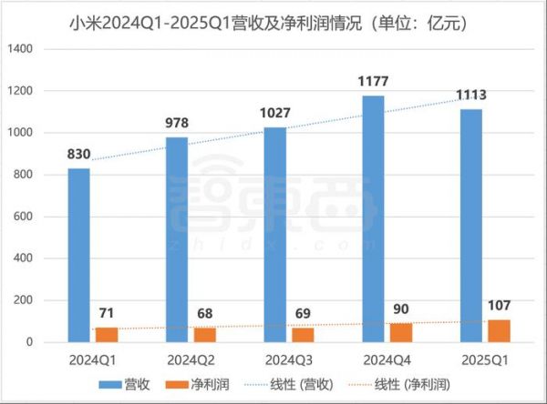 具体来看,小米一季度营收1113亿元,同比增长47.4%,净利润107亿元,同比增长64.5%。