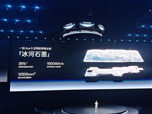 除了SoC的性能和风驰游戏内核,一加Ace 5至尊版长时间游戏不掉帧还仰仗于「冰河散热系统」带来的超强散热能力。该系统石墨面积高达12300mm²,专为散热设计的手机冰河后盖,更是让一加Ace 5至尊版散热面积达到了41875mm²。
