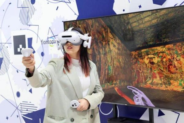5月23日,观众在文博会现场体验VR修复永乐宫壁画。新华社记者 梁旭 摄科技与文化的深度融合,正推动文化体验从传统的“静态观赏”向“沉浸互动”转变,使文化成为可感知、可参与、可创造的鲜活存在。同时,科技对文化产业的推动力,已从最初的工具辅助转变为叙事结构与传播方式的核心驱动。