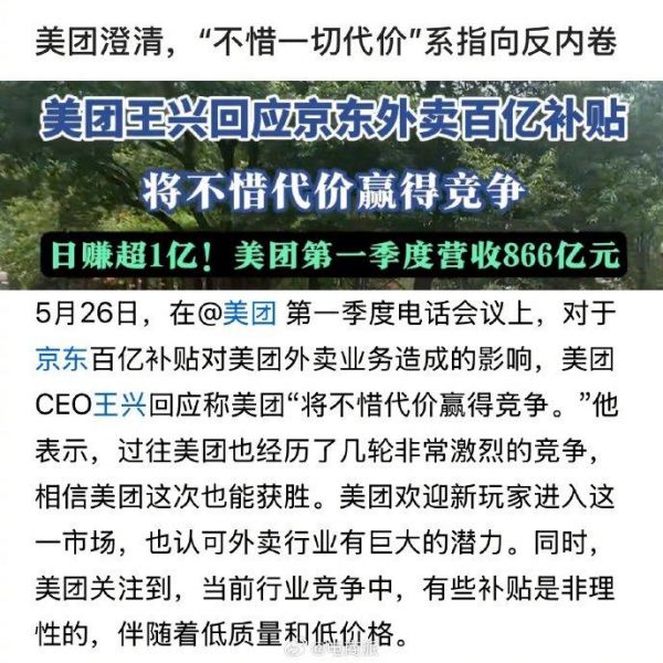 外卖大战卷到起飞,美团王兴发声了:将不惜代价赢得竞争