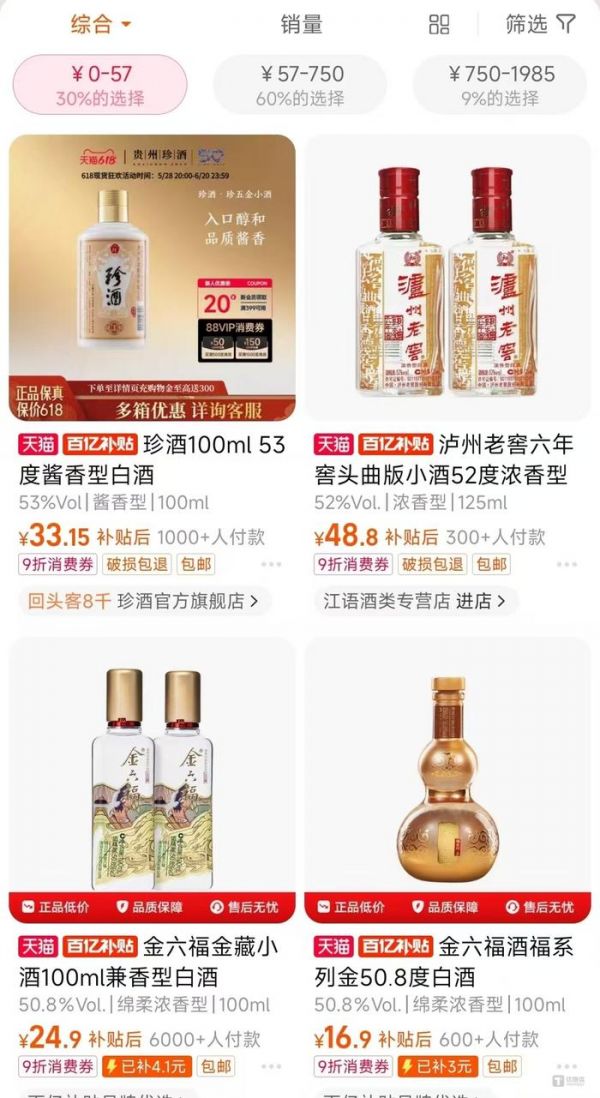 另一个明显现象是,在各平台“618”专区,即使平价区也几乎被名酒及其嫡系品牌垄断,杂牌白酒大量消失。对于这一现象,多位业内人士分析认为,一方面,或与近年来各地加强对“特供酒”“假酒”“贴牌酒”的整顿有关,让那些低劣产品正加速从线上出清。
