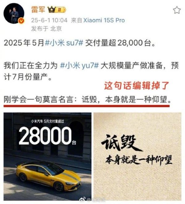 “真正优秀的企业都不怕小米”,小米高管潘九堂也发声了,淘汰的都是劣质企业,比亚迪、华为等车企都很优秀,没必要乱评价别人。