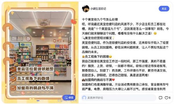 然而,当褪去规模光环,美宜佳的风光似乎没有表面看起来那么简单。比如最近在网络上一篇题为“十个美宜佳九个亏怎么处理”的帖子,揭示出一个尖锐的问题:美宜佳规模第一的宝座,是否正以万千小店主微薄利润为代价?