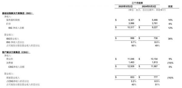 相比之下,公司受益于AI基础设施的建设热潮。基础设施解决方案集团(ISG)营收103亿美元,同比增长12%,其中服务器和网络业务贡献63亿美元,数据存储业务40亿美元。
