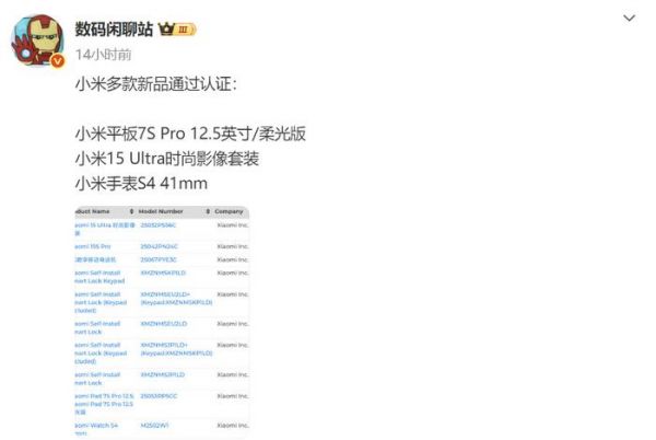 小米14 Ultra或支持卫星通信,平板新品再曝光