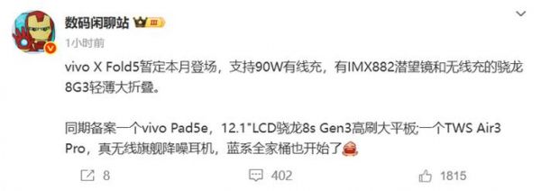 大V透露vivo X Fold3系列发布会时间,新品阵容堪称豪华!