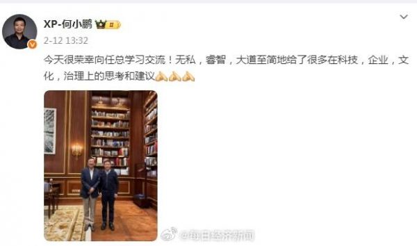 今年2月,小鹏汽车董事长、CEO何小鹏就曾拜访华为创始人任正非。何小鹏在微博发文称:“今天很荣幸向任总学习交流!无私、睿智、大道至简地给了很多在科技、企业、文化、治理上的思考和建议。”(每经综合,德塔)