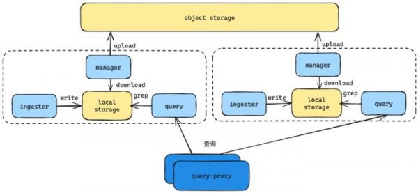 Query 组件, 负责具体查询任务的执行, 在本地存储对日志块做全文检索