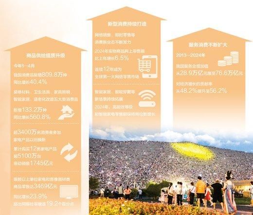 2024年,我国服务零售额增长6.2%。今年一季度,与消费结构升级相关的服务消费保持两位数增长。服务消费的快速增长和持续细化,不仅优化了产业结构,还为数字经济、平台经济等新业态提供了广阔空间,推动“制造大国”迈向“服务强国”。