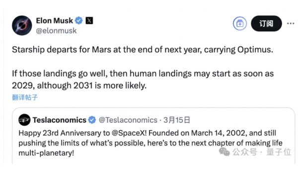 马斯克甚至还放言:明年要带着擎天柱去火星。如果着陆顺利成功,可能在2029年或2031年开始向火星运送真人。