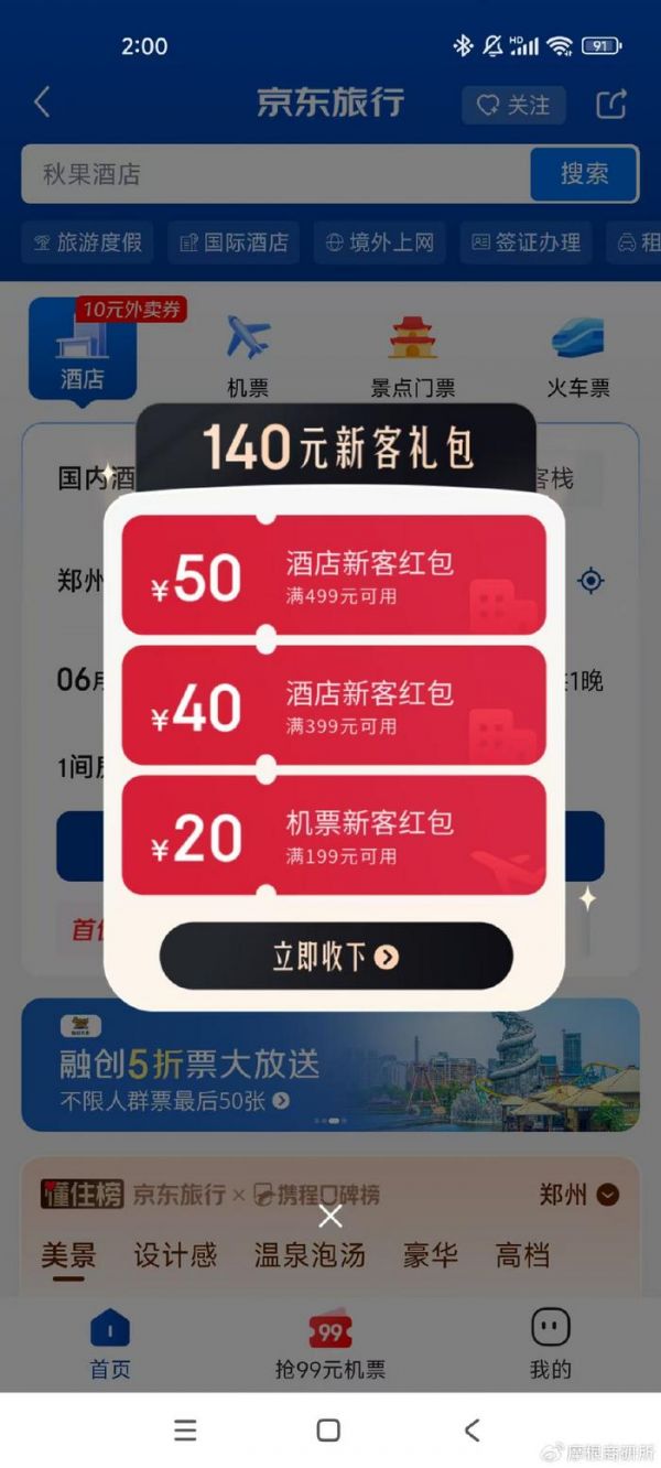 经测试,京东旅行新用户有140元红包补贴。相同日期的同一趟航班,京东的价格已经能和携程持平,加上补贴后,已经能做到部分更低价。