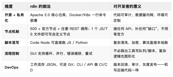 总结来说就是把N8N当成“低代码的 Airflow + Zapier”,可视化只是入口,深水区全给你留着。说白了就是透明度较高。