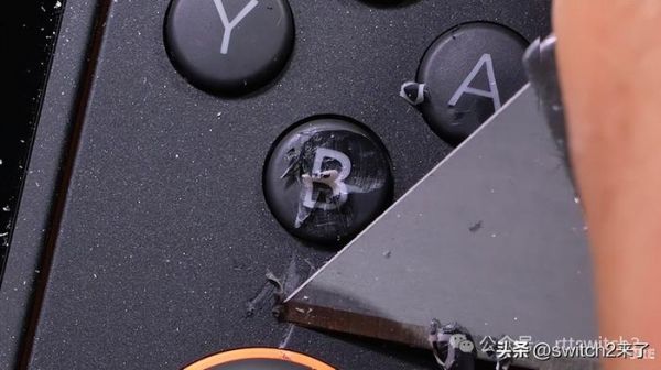 手柄使用美工刀直接割,塑料硬度不堪。主机背面可以用刀轻松直接切割雕刻,背面的LOGO是直接表面印刷的,很快会磨花。所以swtich2的保护壳绝对也是必备的配件了。当然也可以贴个痛贴来保护一下。