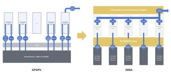 为彻底攻克内存瓶颈,SRDA 修改整个内存架构,在计算芯片上直接分布式地集成超高带宽、大容量 3D-DRAM 内存,实现内存带宽的极致提升。