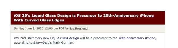 彭博社进一步补充,20周年纪念版iPhone内部代号为“Glasswing”(玻璃翼蝶),象征其透明化设计理念。设备将配备弧形玻璃边缘、超窄边框及真正无边框屏幕,彻底取消刘海与挖孔。与之配套的iOS 26系统将推出“液态玻璃”(Liquid Glass)设计主题,通过动态视觉效果强化全玻璃机身的科技感。该设计语言预计于2025年6月9日苹果全球开发者大会(WWDC)首度公开,为两年后的硬件发布奠定软件基础。
