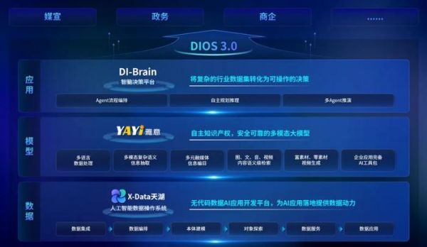中科闻歌自主研发的决策智能操作系统DIOS(Decision Intelligence Operating System),面向政企级用户,突破多语言理解、跨模态语义和复杂场景决策核心技术,具备从数据操作、模型构建到决策智能与场景应用全链条AI能力。DIOS在确保产品可靠性与安全性的同时,显著降低AI落地成本和部署时间,全面服务于媒体、金融、政务、能源等行业的智能化转型。